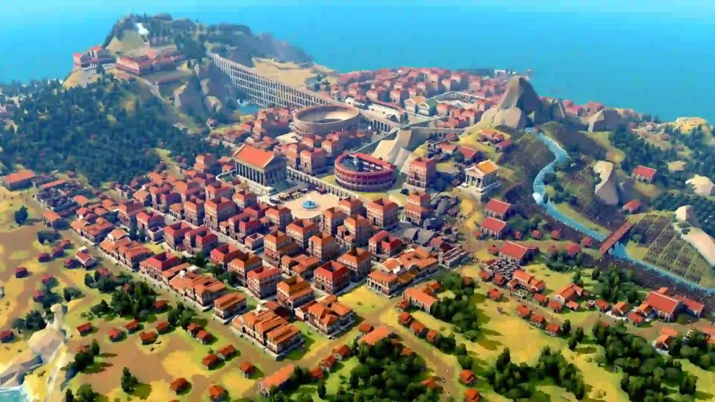 - Deep Roman-themed city-building mechanics
