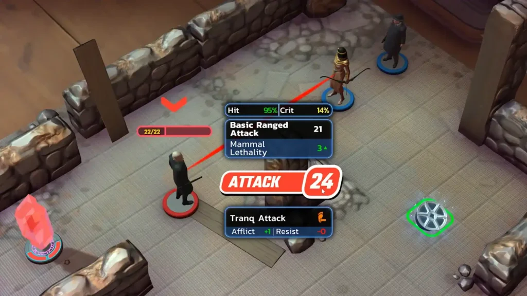 - Turn-based tactical combat with reactive mechanics